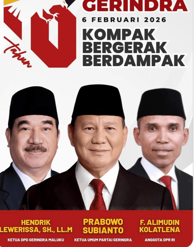 Lewerissa : Optimis Gerindra Maluku Terus Satukan Langkah PerjuanganAmbon,MalukuBersatu.Com,-Kehadiran insan pers pada perayaan ulang tahun Partai Gerindra yang ke-18 yang berlangsung di Hotel Santika Premiere, Jumaat (06/02/26). Sangat mendapat perhatian besar dari Ketua DPD Partai Gerindra Provinsi Maluku Hendrik Lewerissa. Dengan penuh haru...