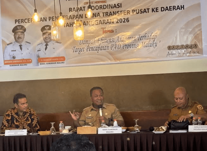 Ambon,MalukuBersatu.com,–Wakil Gubernur Maluku, Abdullah Vanath, selesai mengikuti Rapat Koordinasi (Rakor) Percepatan Penyerapan Dana Transfer Pusat ke Daerah Tahun Anggaran 2026. Yang dilaksanakan Bapenda Maluku berlangsung di Hotel Blitz, pada Senin (20/4/2026). Saat dimintai komentar terhadap kegiatan luar biasa yang menghadirkan pejabat pusat, Direktur Pelaksanaan dan Pertanggungjawaba...