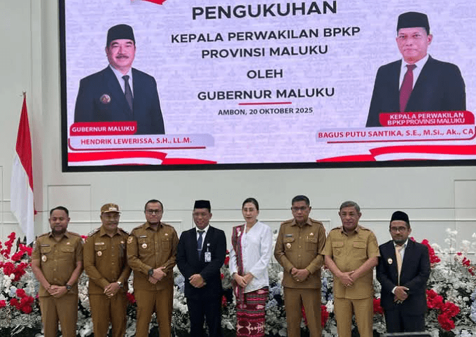 Ambon,MalukuBersatu.Com,Bupati Buru Selatan La Hamidi pada Senin, (20/20/25), berkesempatan menghadiri kegiatan Pengukuhan Kepala Perwakilan BPKP Provinsi Maluku di Kota Ambon. Kegiatan pengukuhan berlangsung di lantai VII Kantor Gubernur yang dilakukan oleh gubernur Maluku Hendrik Lewerissa. Selain Bupati Bursel ada juga bersama beberapa Kepala Daerah lainnya. Kehadiran mereka itu sangat pent...